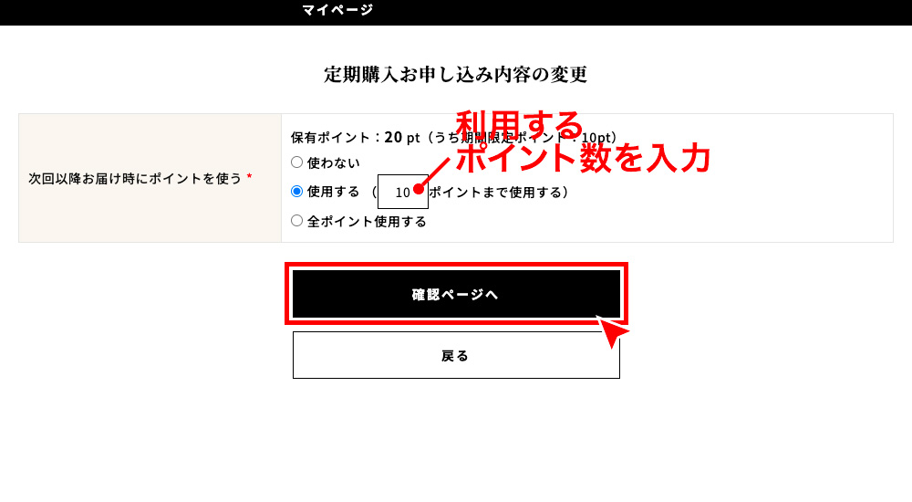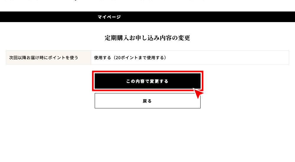 使用するポイントをご確認後、「この内容で変更する」を押す。